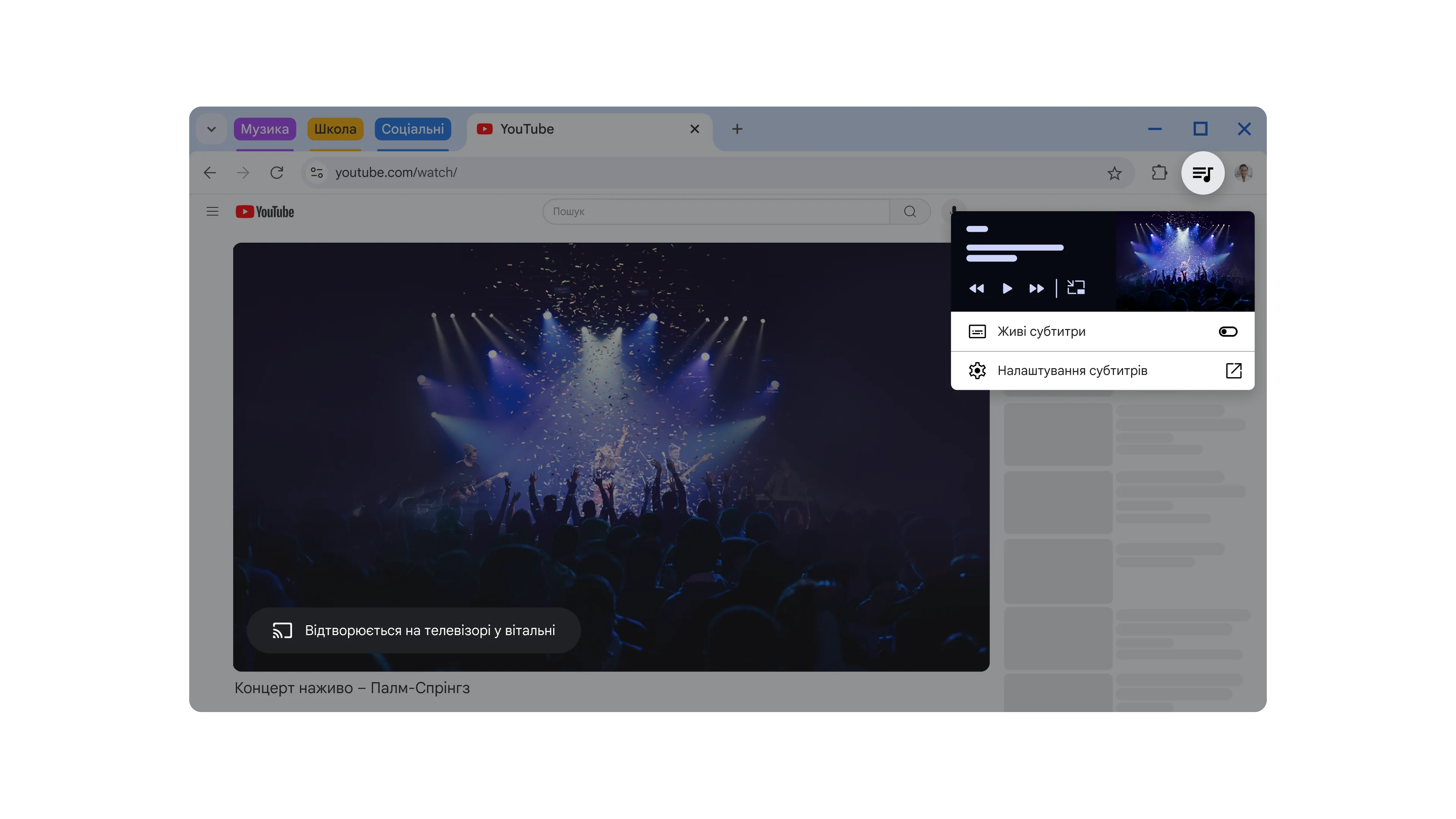 У Chrome можна транслювати весь екран або лише певну вкладку з комп’ютера або телефона на телевізор із вбудованою технологією Google Cast.